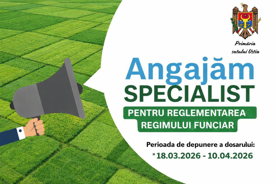 Primăria satului Ustia organizează concurs pentru ocuparea unei funcții publice vacante în domeniul reglementării regimului funciar.
